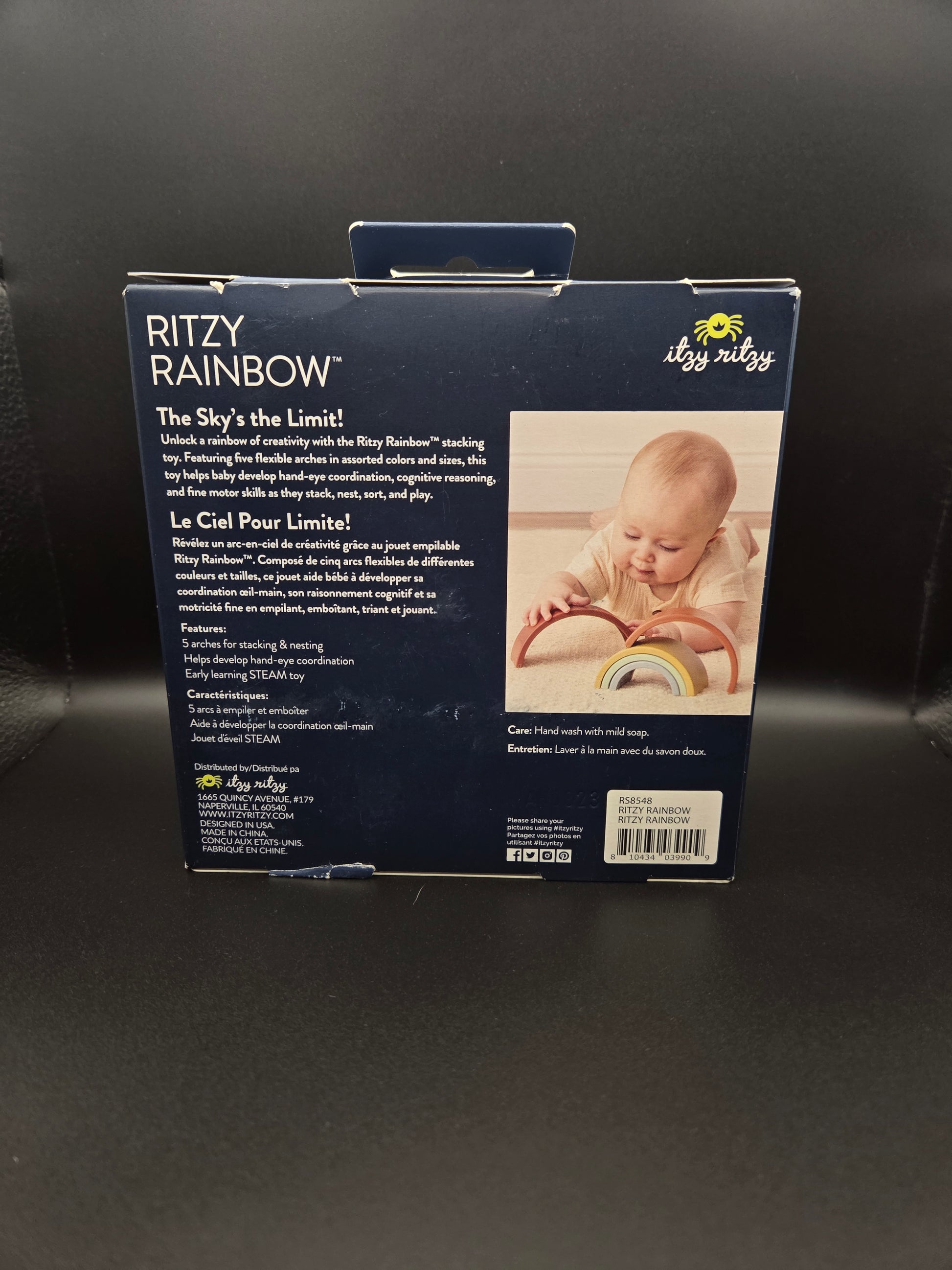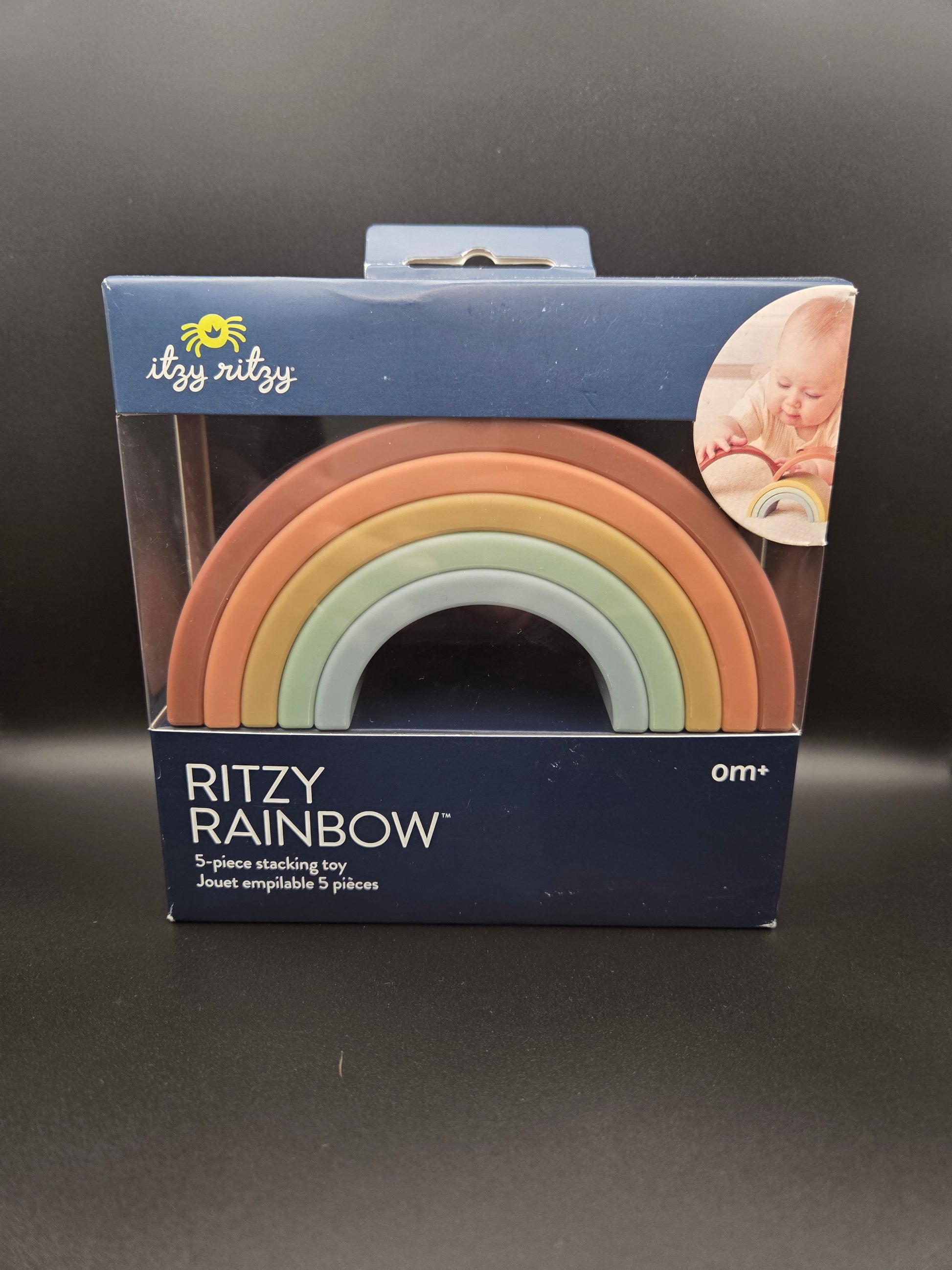 The Sky’s the Limit! Unlock a rainbow of creativity with the Ritzy Rainbow™ stacking toy. Featuring five flexible arches in assorted colors and sizes, this toy helps baby develop hand-eye coordination, cognitive reasoning, and fine motor skills as they stack, nest, sort, and play.