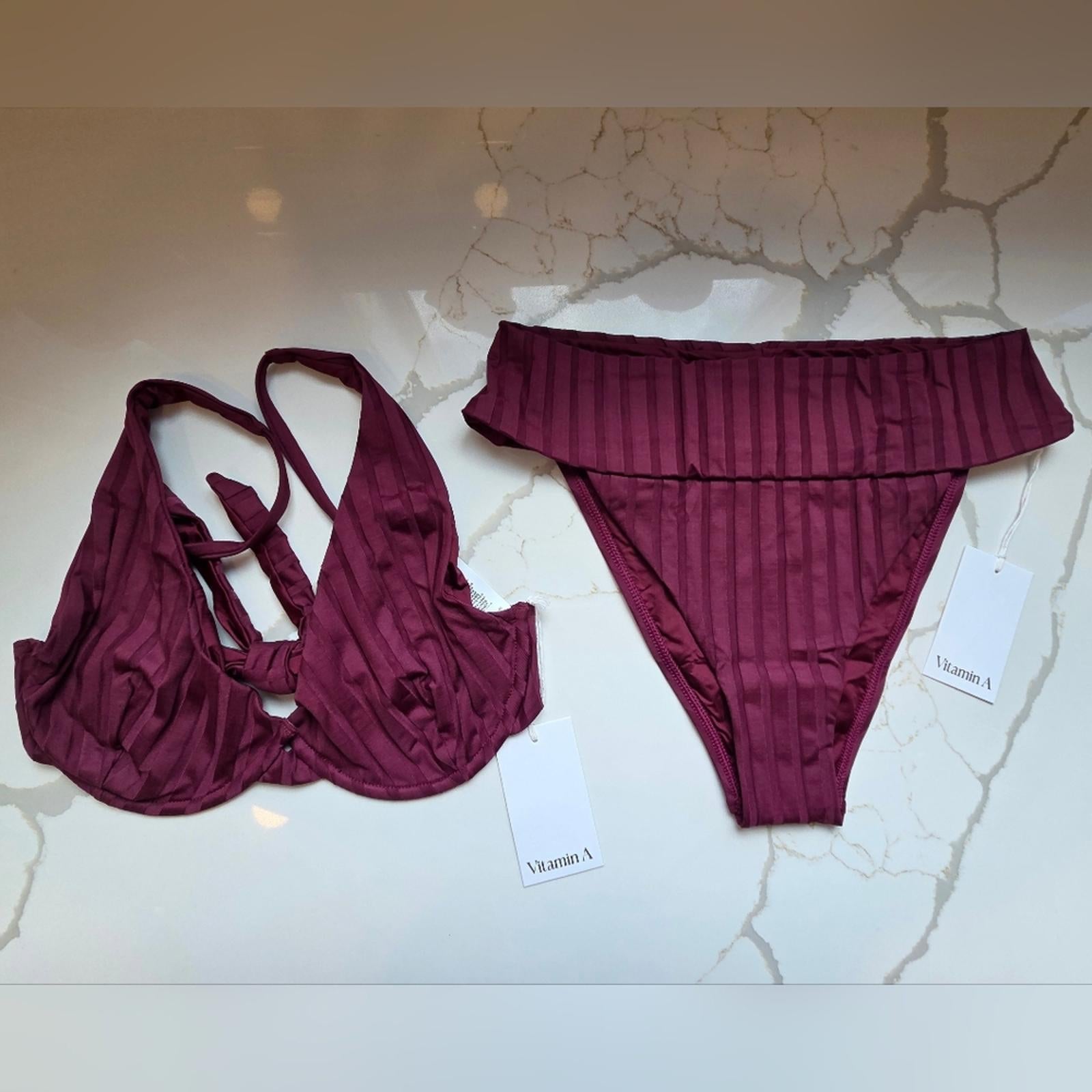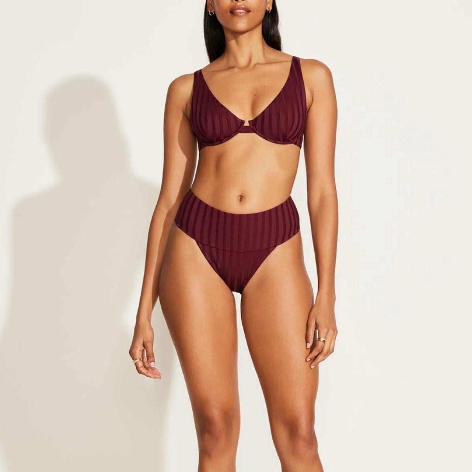 Turn heads in the ultimate swimwear combo! The Vitamin A Sangria SuperRib set features the flattering Emmi High Waisted Bottoms and the stylish Rossi Top, both crafted from soft, textured SuperRib fabric in a rich sangria hue. Designed for a confident, sculpted fit, this set is perfect for beach days or poolside lounging.