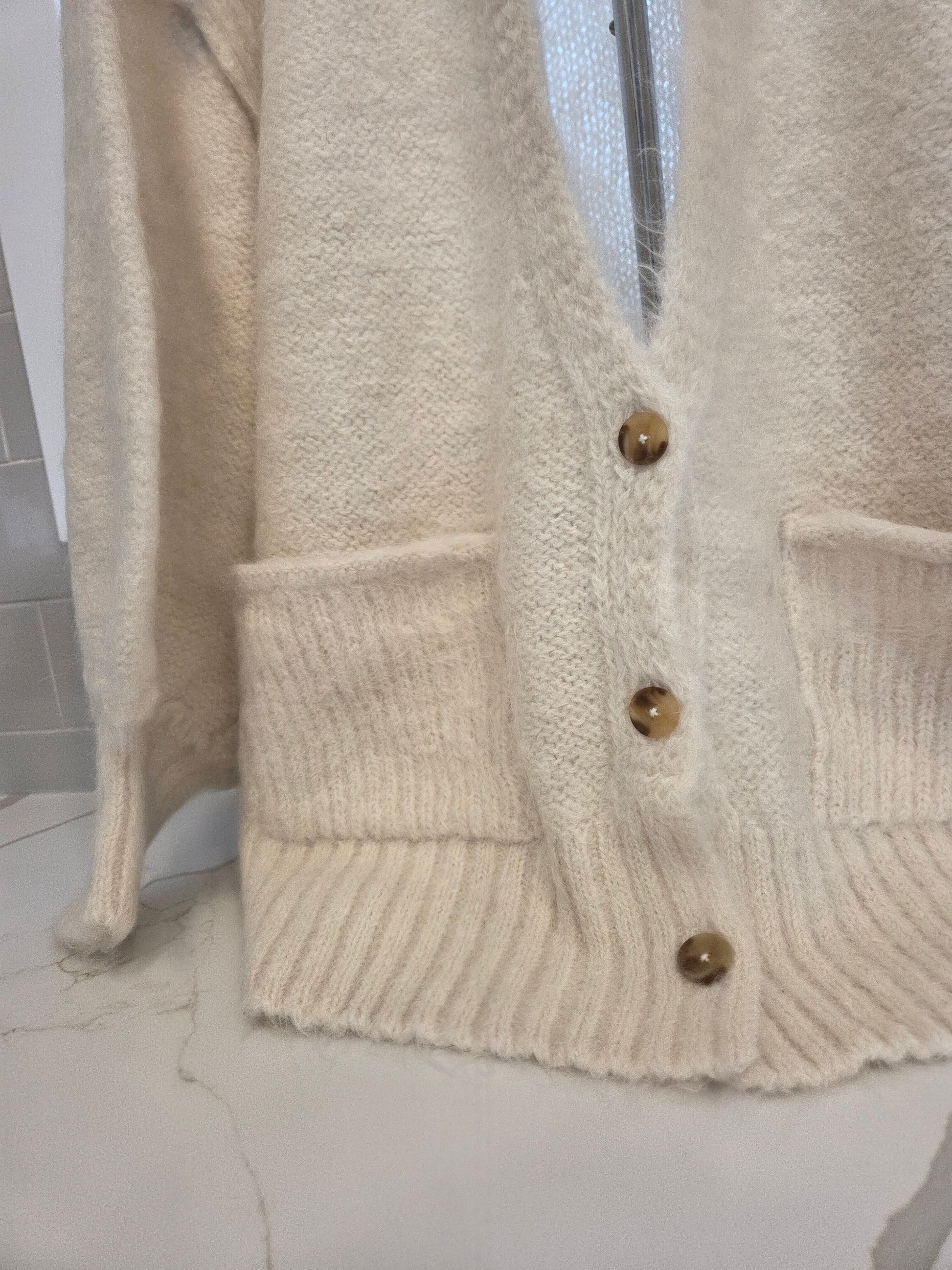 Your new favorite cozy cardi from the We The Free collection featured in a fuzzy knit fabrication and slouchy silhouette with dropped sleeves and patch pocket detailing. Slouchy, oversized fit. Soft knit fabrication with a fuzzy feel, dropped dolman sleeves, ribbed trim, button-front detail, patch pockets at front, raised seam detail. The one you’ll wear forever, this cardi is the perfect combination of cozy and chic.